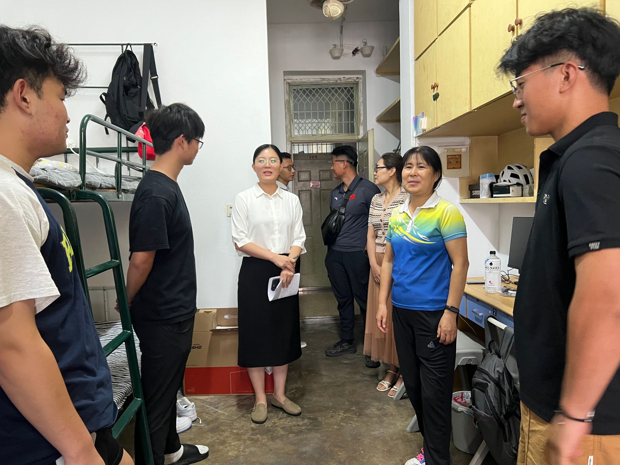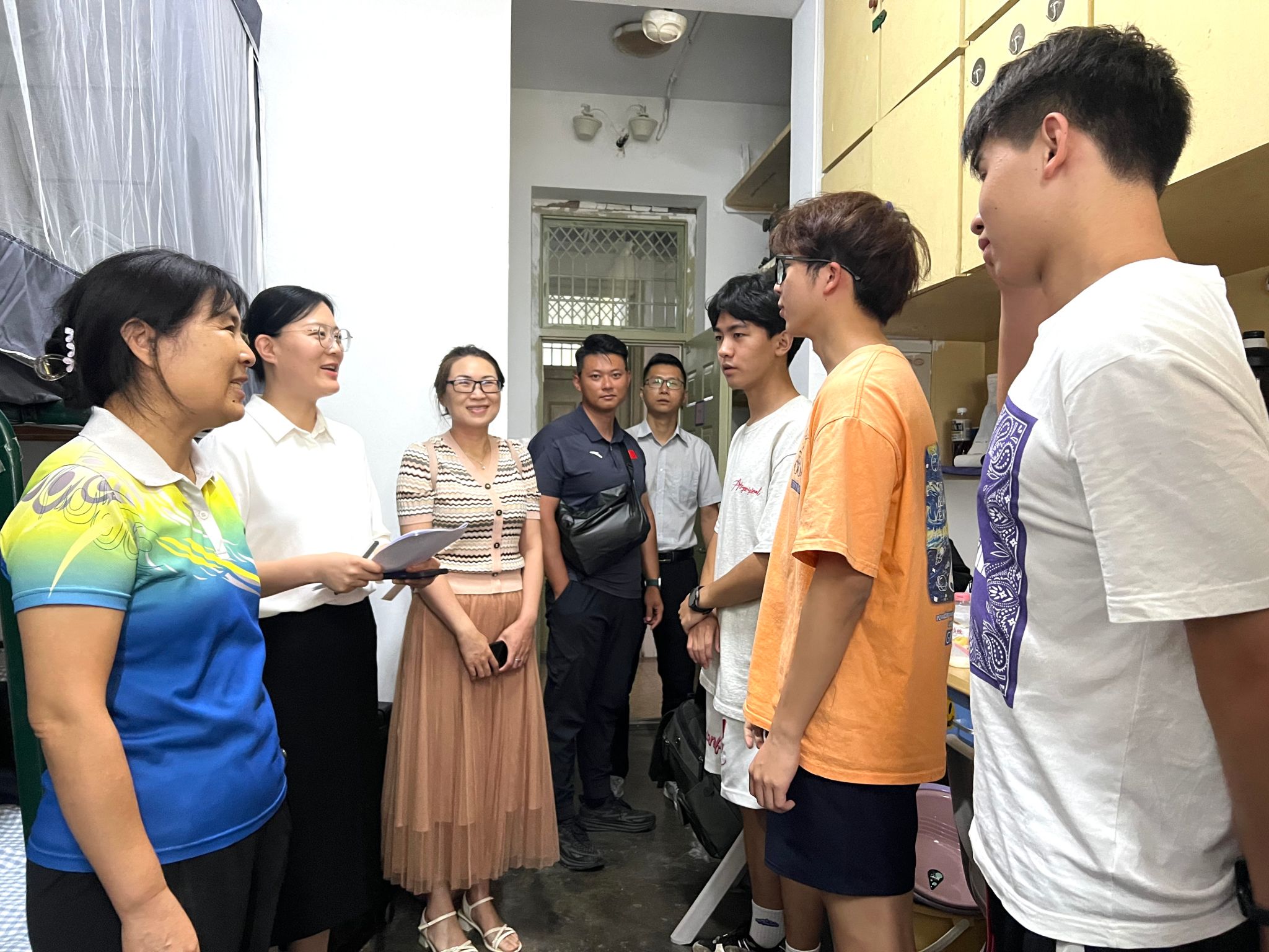 为了解 2024 级新生入学后的生活情况,尽快适应校园环境,9月6日下午,体育学院党总支书记张萍、党总支副书记李淑华、辅导员和2024级新生班主任深入新生宿舍进行走访看望,为体育学院的新成员送上关怀与温暖。