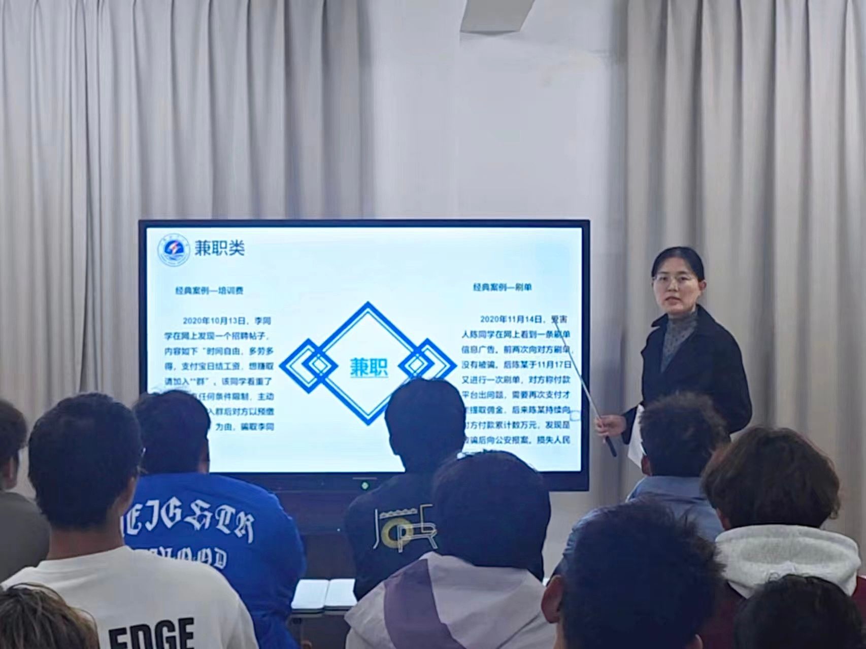 讲座主要包括电信诈骗、网贷、宿舍安全、消防安全、交通安全等内容。李淑华表示当前诈骗手段层出不穷,各种各样的诈骗形式不断地威胁着同学们的隐私以及财产安全,大家需要时刻警惕诈骗行为,确保自身人身和财产安全。李淑华提醒同学们树立正确消费观,不要过度追求奢侈品,谨慎“超前消费”,更不要以身犯险,随意借贷,并列举了网贷真实案例,揭示网贷可能带来的严重后果,包括高额利息、债务困扰、威胁骚扰等。在宿舍安全方面,李淑华特别强调了要消除宿舍消防隐患,包括不规范用电行为、使用违禁电器、存在明火以及吸烟等,这些问题均有可能导致严重的火灾事故,严重影响财产与生命安全。