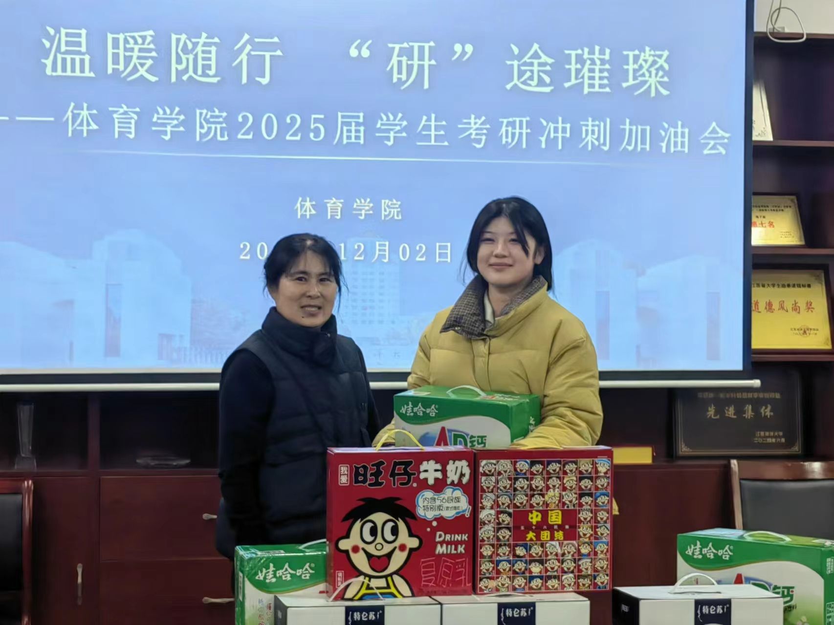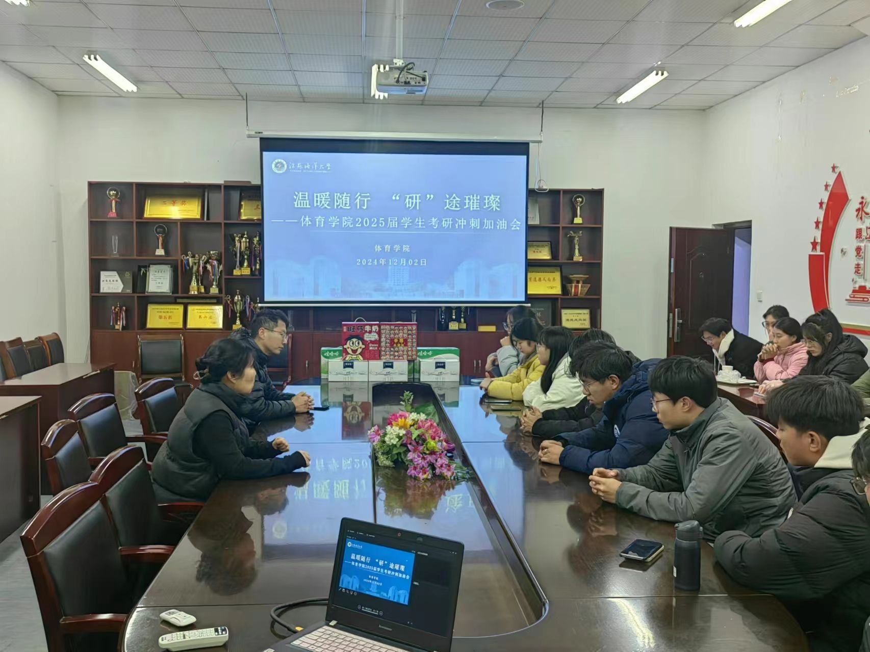 在考研冲刺的关键阶段,为鼓舞体育学院考研学子的士气,增强学生考试信心,体育学院于12月2日在会议室召开考研冲刺加油会,学院党总支书记张萍出席会议,25届全体考研学生参加,会议由学工办主任仝友鹏主持。