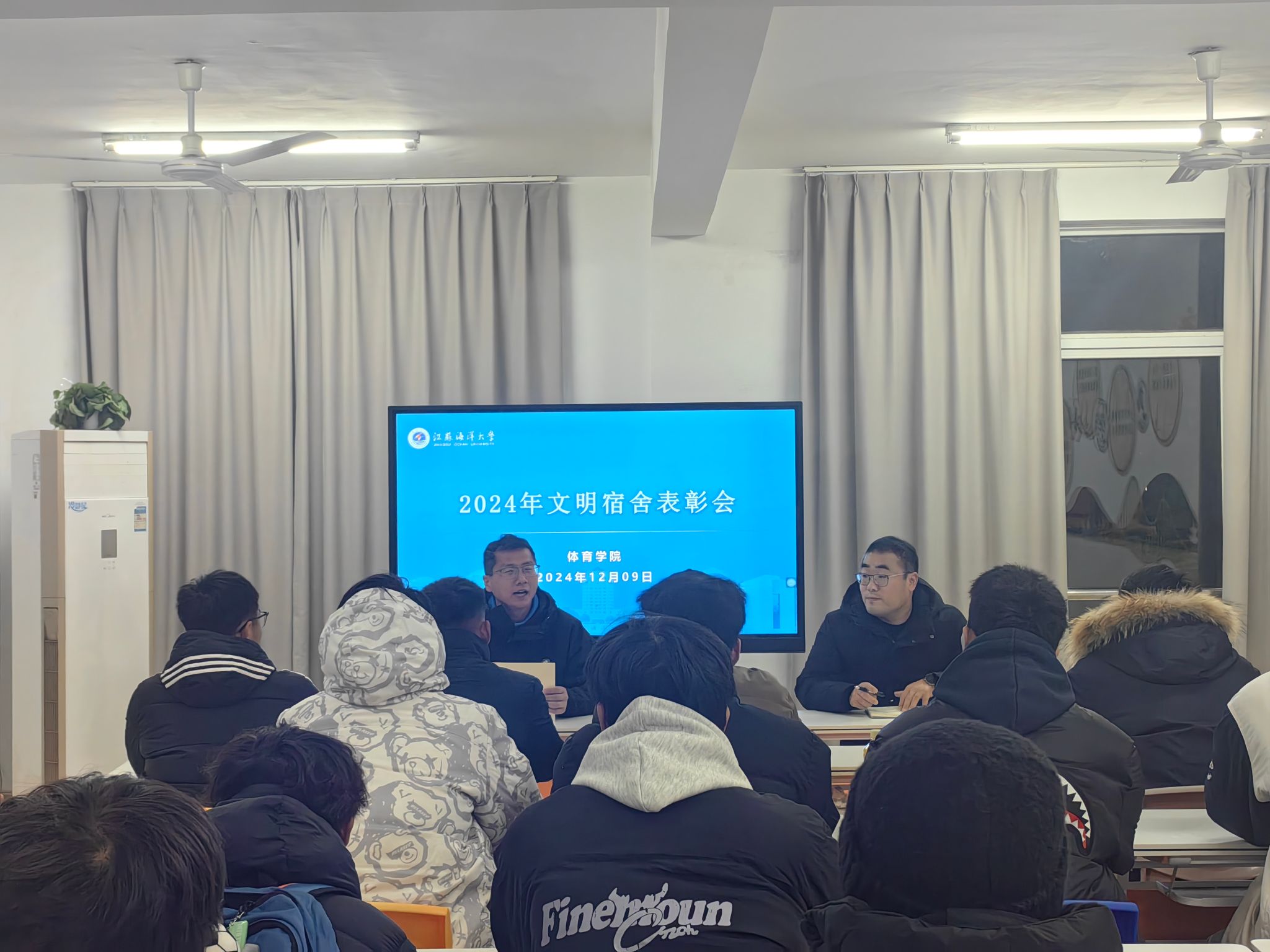 为营造积极健康向上的宿舍氛围,促使学生养成良好的生活习惯,12月9日,体育学院在一站式学生社区召开2024年文明宿舍表彰会,学生处宿管科科长马奔出席会议,体育学院全体宿舍长参加会议,会议由学工办主任仝友鹏主持。
