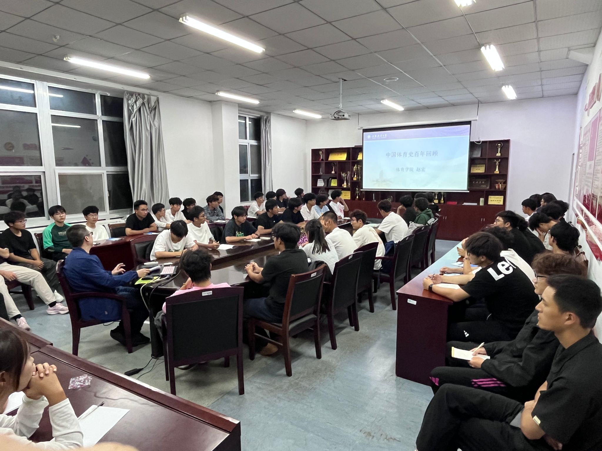 赵宏鼓励新生:“百年体育史是一部奋斗史,作为体育人,既要传承‘为国争光’的拼搏精神,也要扎根专业练就过硬本领。”讲座内容丰富详实,不仅让新生系统了解中国体育的发展历程,更激发了同学们的专业认同感与使命感。在讲座尾声,赵宏与新生亲切互动交流,细致为同学们解答了“传统体育如何与现代训练结合”等问题。