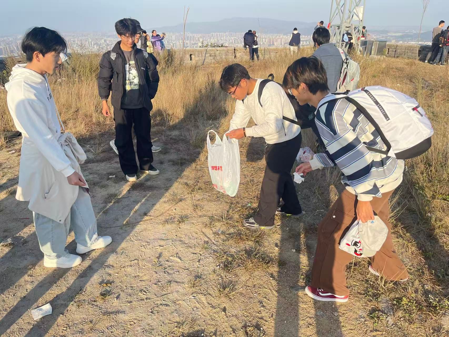 抵达地点后,团员青年迅速分组,沿登山步道、草丛石缝、观景平台开展“地毯式”垃圾清理,细致捡拾塑料瓶、烟头、废纸等,按类别分装,班长郭琳琅带头冲锋,助力凝聚团队合力。他们的行动感染了游客,不少人表示将积极响应“垃圾不落地”理念。经数小时奋战,景区环境焕然一新,累计清理垃圾十余袋。