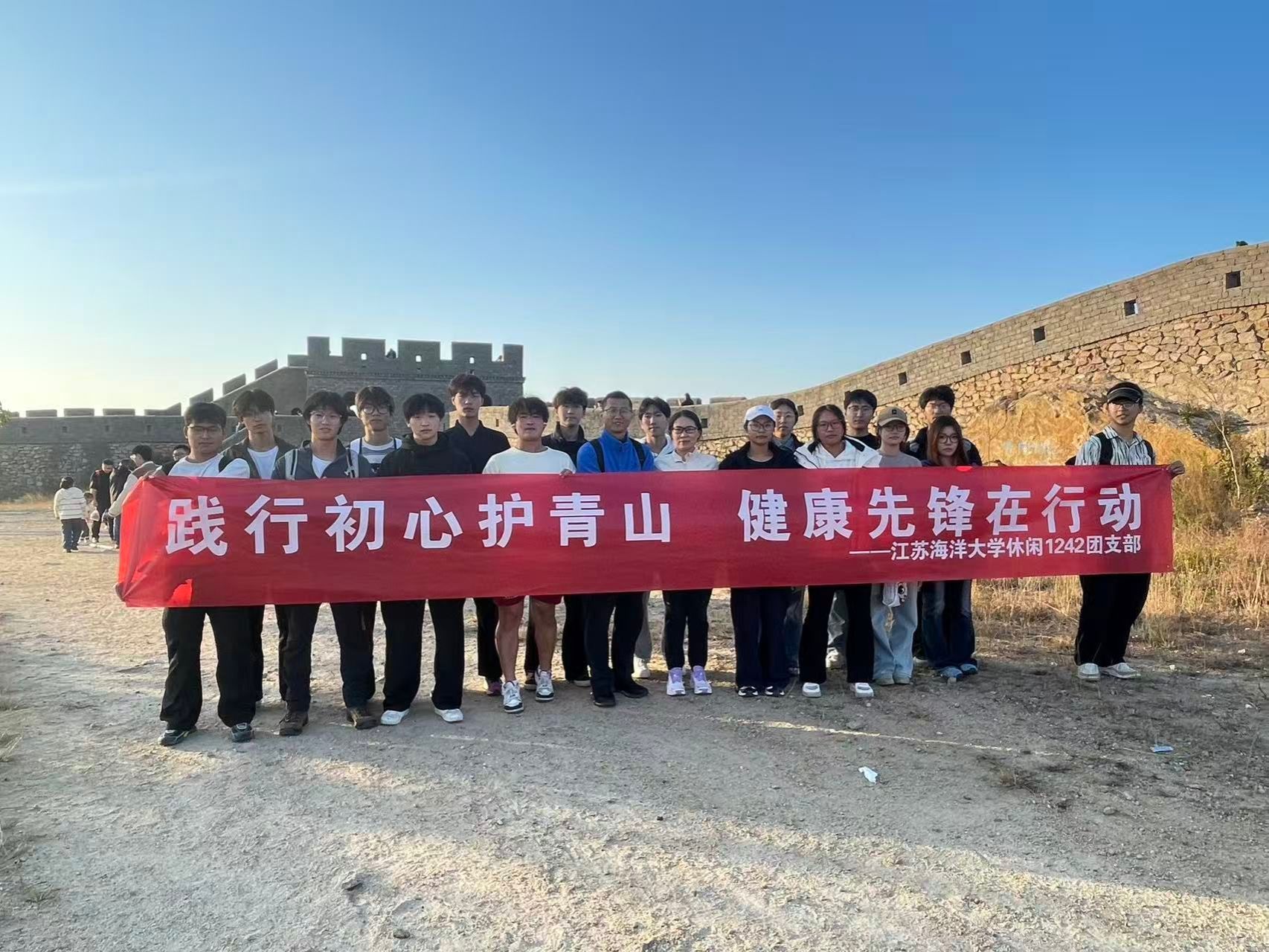 11月2日,以“践行初心护青山 健康先锋在行动”为主题的团日活动在连云港市石棚山风景区顺利举行。体育学院休闲1242班全体同学以实际行动守护自然生态,展现新时代青年的责任与担当。班主任、辅导员全程参与。