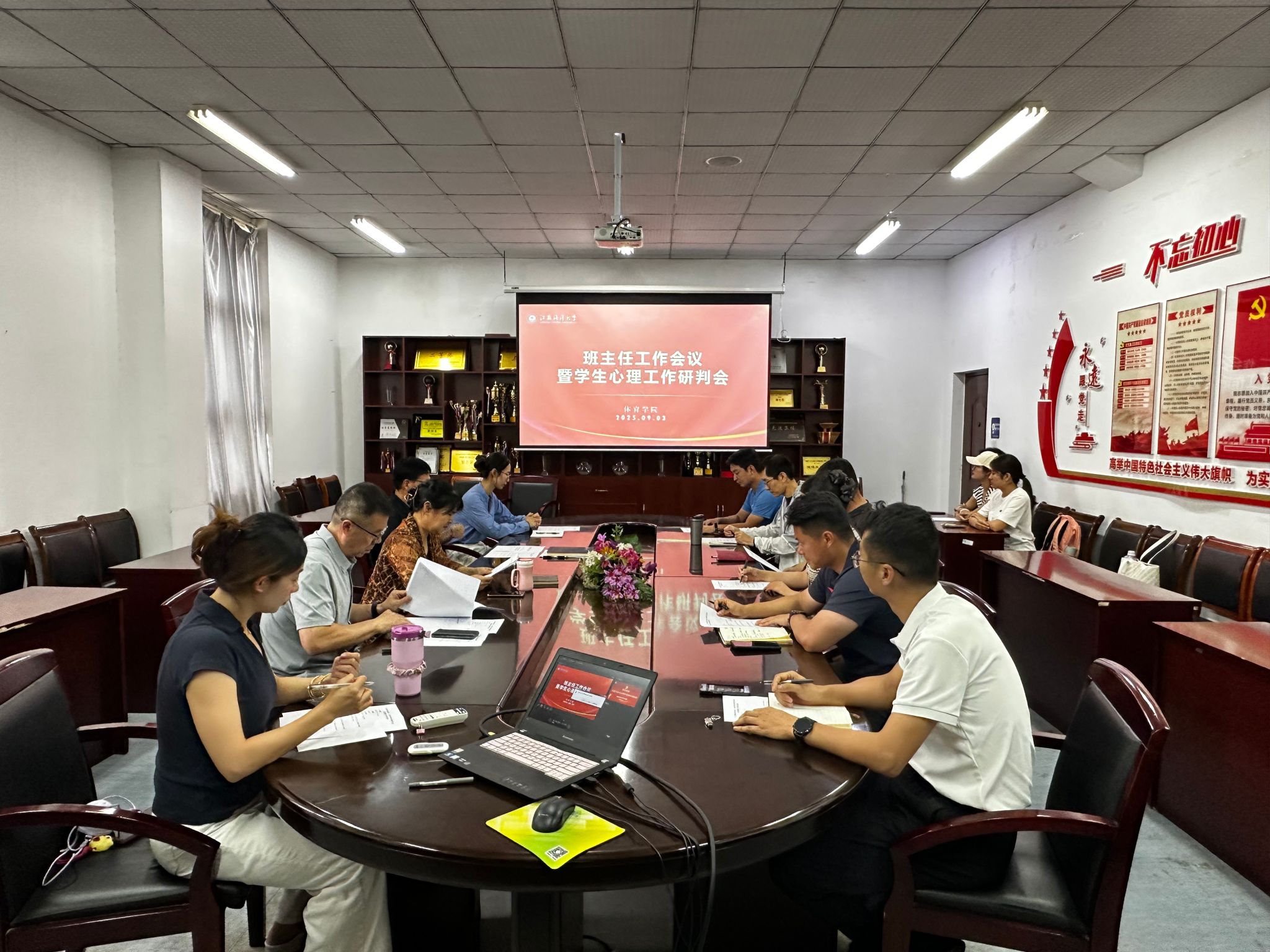 为统筹推进新学期学生管理与育人工作,筑牢学生心理健康防线,9月3日,体育学院组织召开新学期班主任工作会议暨学生心理工作研判会。学院党总支书记张萍,院长张伦厚,院关工委委员赵宏,辅导员及全体班主任参会。