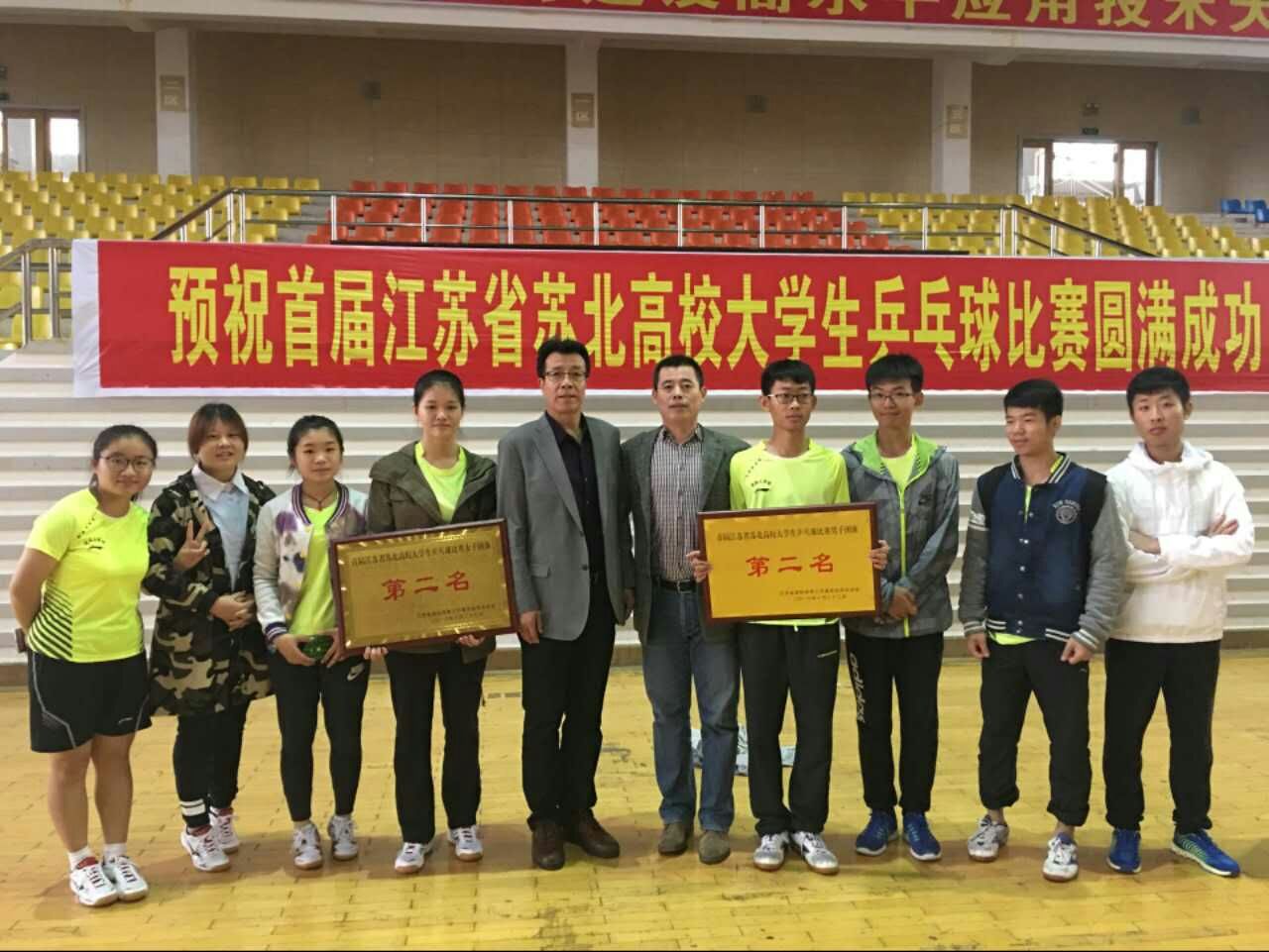 2016年10月22日,江苏省首届苏北高校大学生乒乓球比赛在宿迁学院体育馆拉开了帷幕。苏北12所高校的65名运动员参加了本次比赛,争夺男子单打、女子单打、男子团体和女子团体四个项目的金牌。我校派出由测绘学院姚永琪、朱贤姝,商学院钱伶俐、彭海岚,土木学院冯明昊、靳博文,理学院余世元,外国语高艺珊八名同学组成的乒乓球队参加了本次比赛。