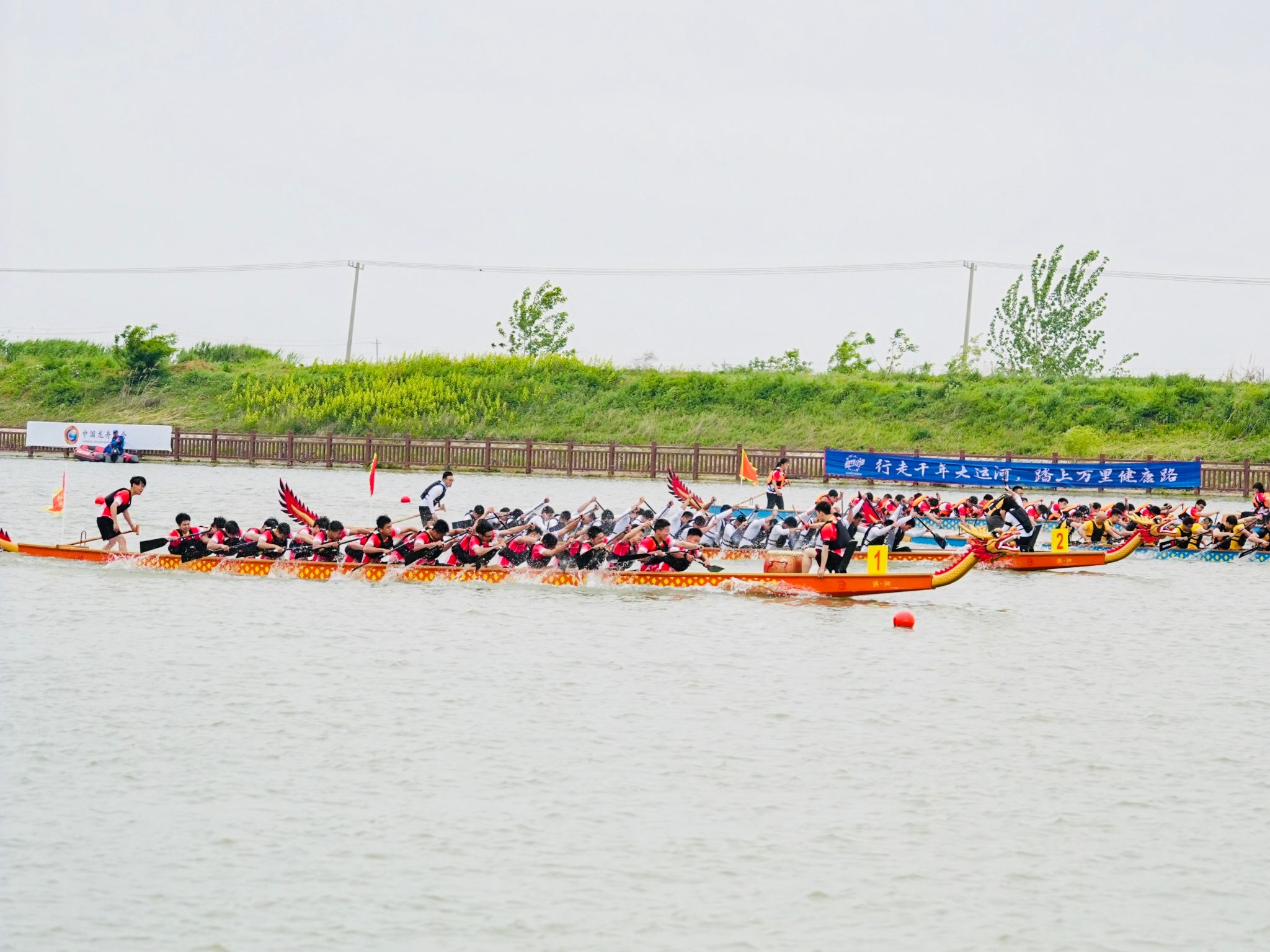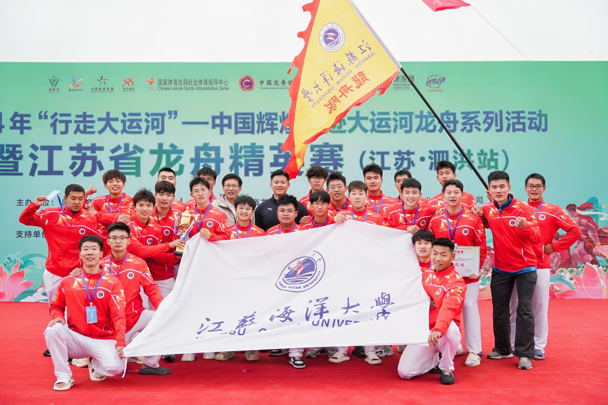 4月27-28日,江苏省龙舟精英赛(泗洪站)在泗洪县临淮古汴河畔举行。本次活动由国家体育总局社会体育指导中心、中国龙舟协会、央视网主办,江苏省龙舟协会、泗洪县人民政府承办。作为2024 年“行走大运河”——中国辉煌足迹大运河龙舟系列活动的全国首站,本次比赛吸引包括南京理工大学、常熟理工学院、三江学院、常州工程学院等6所高校在内的12支省内优秀龙舟队参赛。