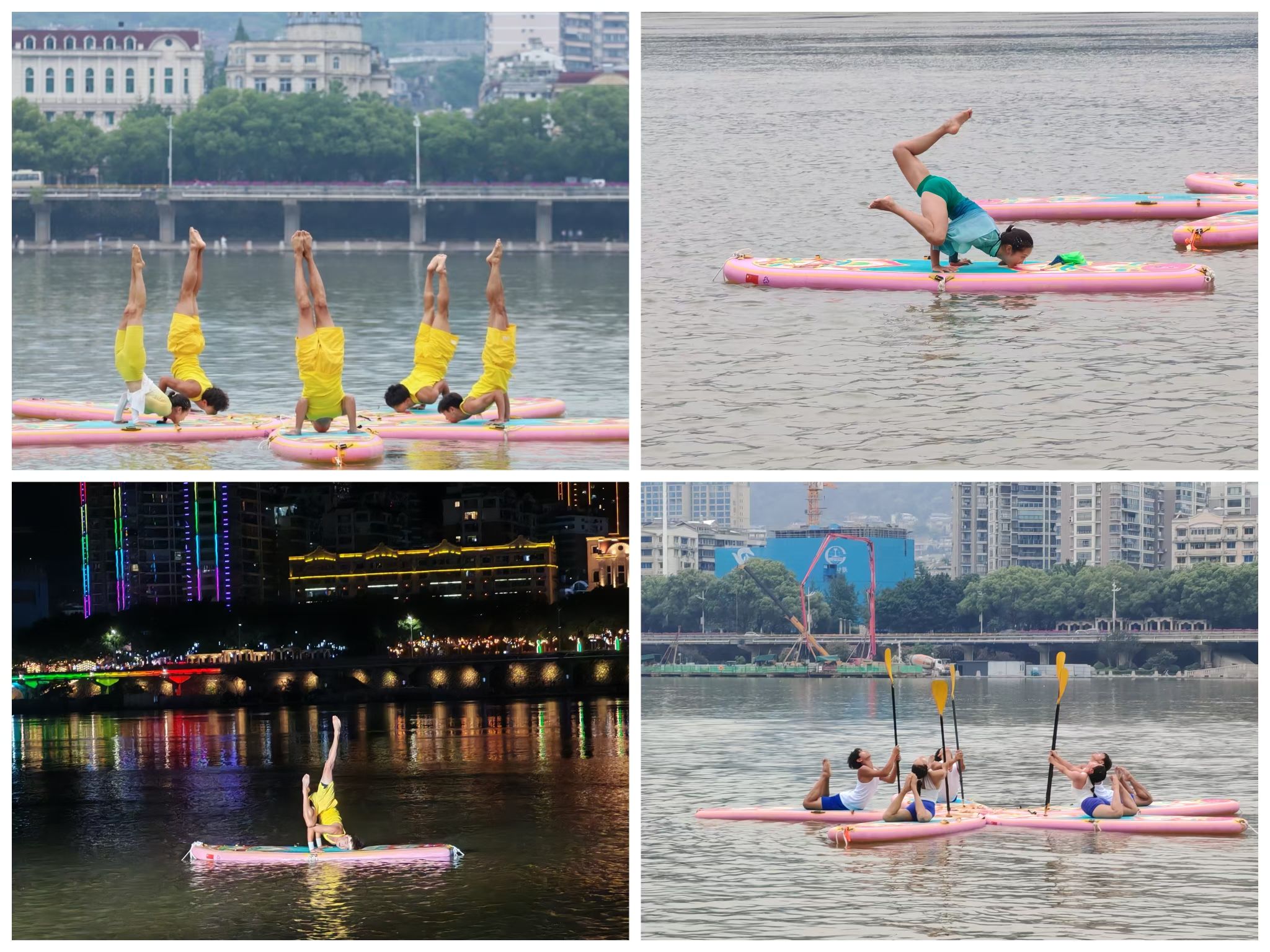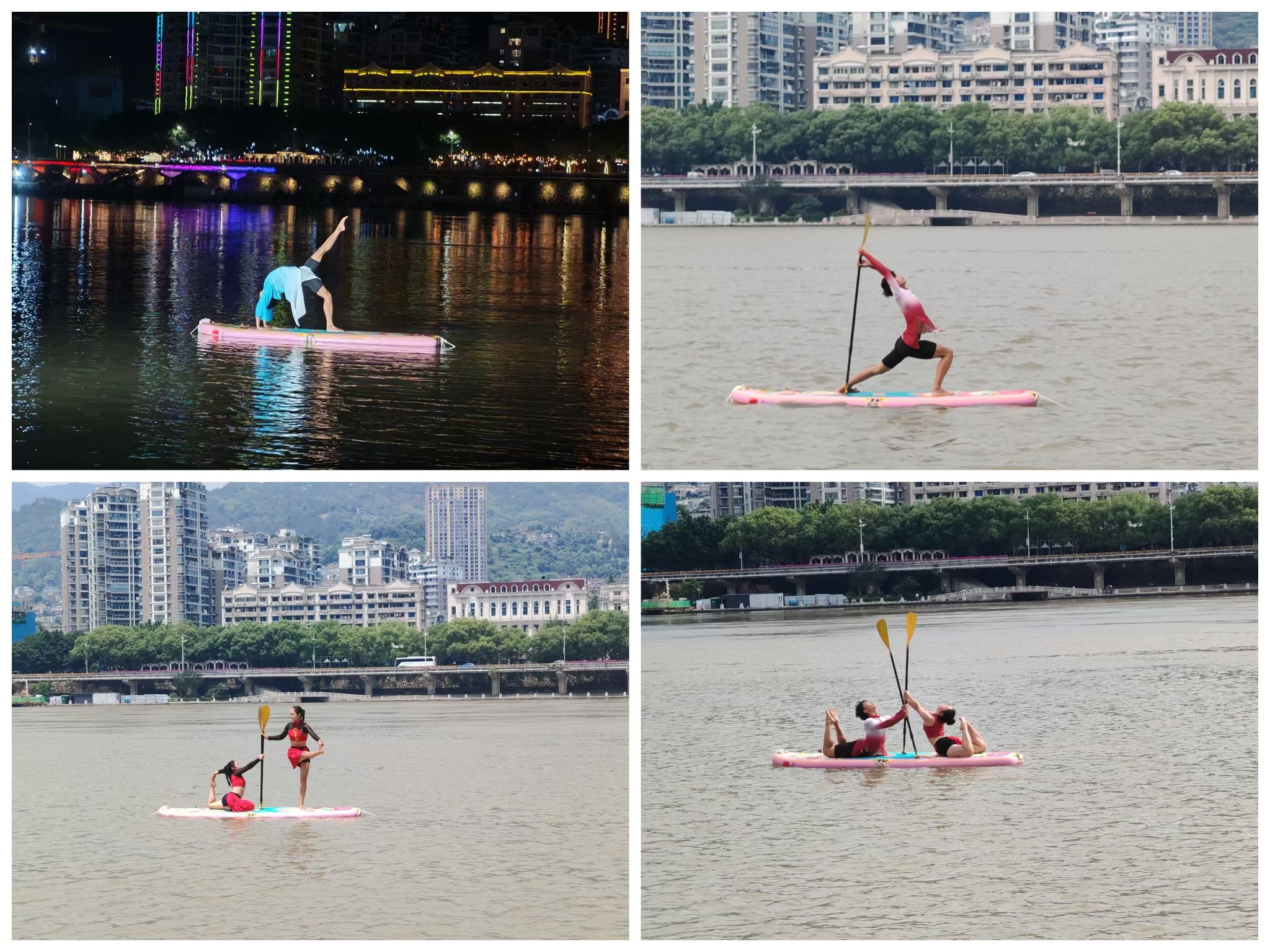 比赛中,我校桨板瑜伽队凭借扎实的技术水平展示及精彩的动作编排,充分展现出了精湛的竞技水平及体育风采。夜晚的太鹤湖云雾缭绕,队员们克服了风雨天气的影响,在桨板上做出倒立、劈叉、起腿等一个个高难度瑜伽动作,尽情展示力与美。最终获得高校组桨板瑜伽团体亚军、混双冠军、男单冠军、女单第三;持桨瑜伽团体第四、混双第三、女双第五、男单第五。