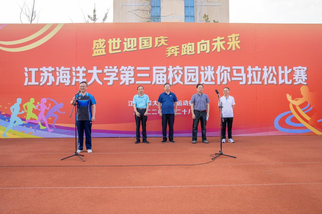 9月28日下午,在中华人民共和国即将迎来73周年华诞之际,江苏海洋大学第三届“盛世迎国庆、奔跑向未来”校园迷你马拉松比赛欢乐开赛。开幕式由副校长严云洋主持,校长宁晓明、校党委副书记史顺良、副校长舒小平,纪委书记陈先宏出席了开幕式,史顺良致开幕词。