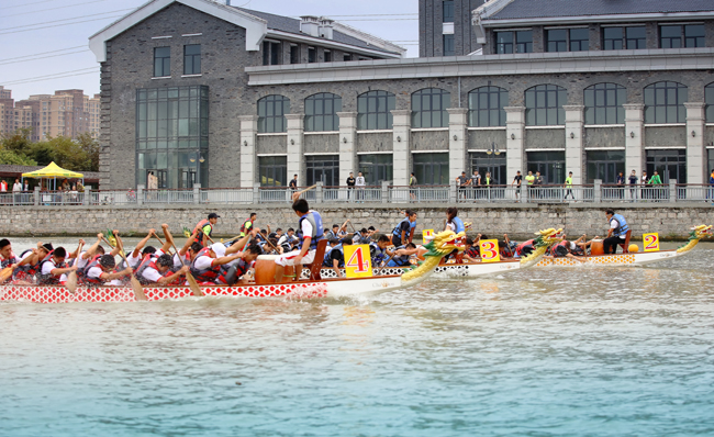 本次比赛设龙舟公开组300米直道竞速、皮划艇男子单人艇300米直道竞速、皮划艇混合双人艇300米直道竞速三个项目。伴随着一声出发的号令,全场鼓声激荡,龙舟300米直道竞速预赛拉开了比赛的序幕。北风飒飒,天空中时而飘下丝丝细雨,但这丝毫没有影响赛场观众的热情。东盐河畔旌旗飘扬,吶喊助威声阵阵。鼓声、号子声与呐喊声此起彼伏。