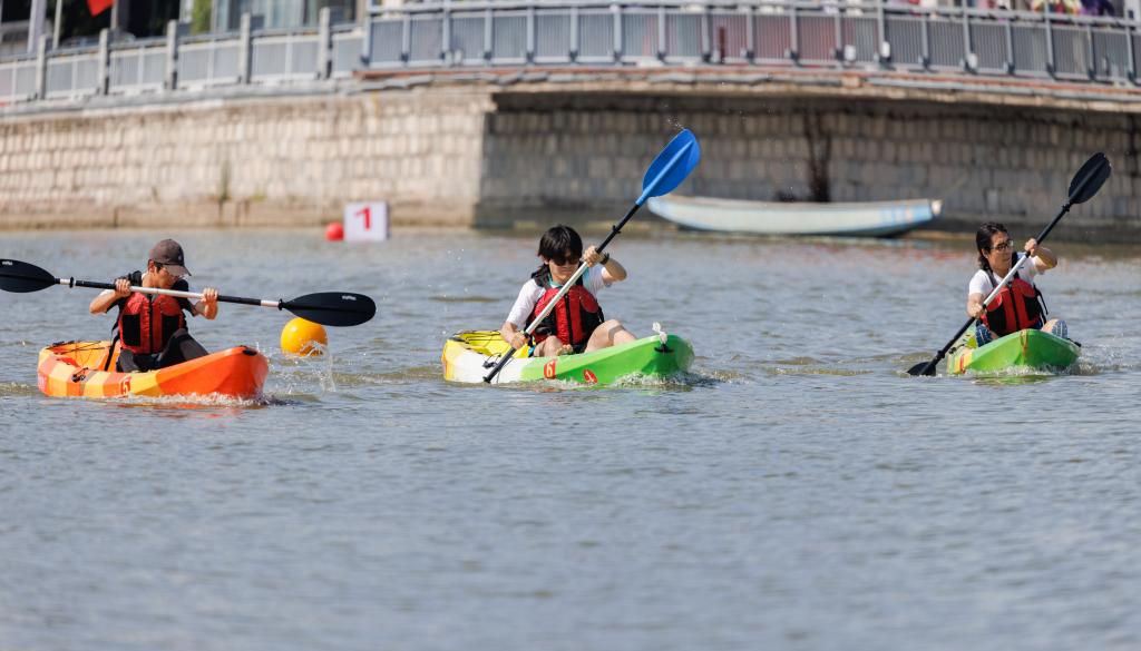 本届水上运动会共有龙舟、单人艇、双人艇三个项目,学生组和教工组两个组别,共15支参赛队伍,近300名运动员参加比赛。