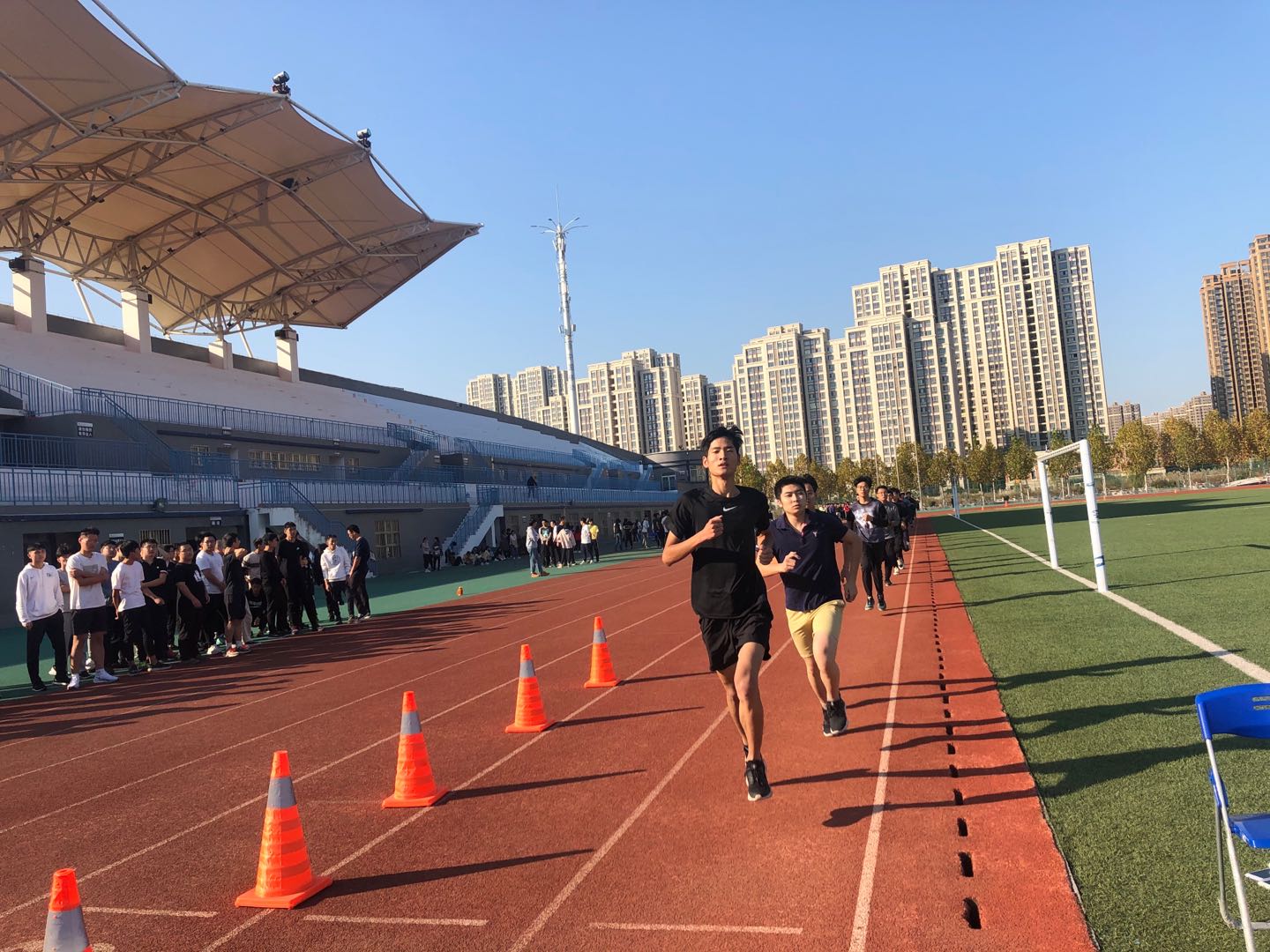 2020年10月24日,我校大学生室外体质健康测试工作在东田径场顺利进行。测试项目分别为:男、女50米,女子800米和男子1000米。为了圆满完成《国家学生体质健康标准》测试工作,在后勤管理处及卫生科的大力支持下,体育学院采取了切实可行的措施:一、积极推行干预制度。二、制定科学训练计划。三、加大课上训练强度。四、制定详细工作方案。五、采取有效医疗措施。已完成7000余人的室外测试项目,预计11月底结束全部体测工作。