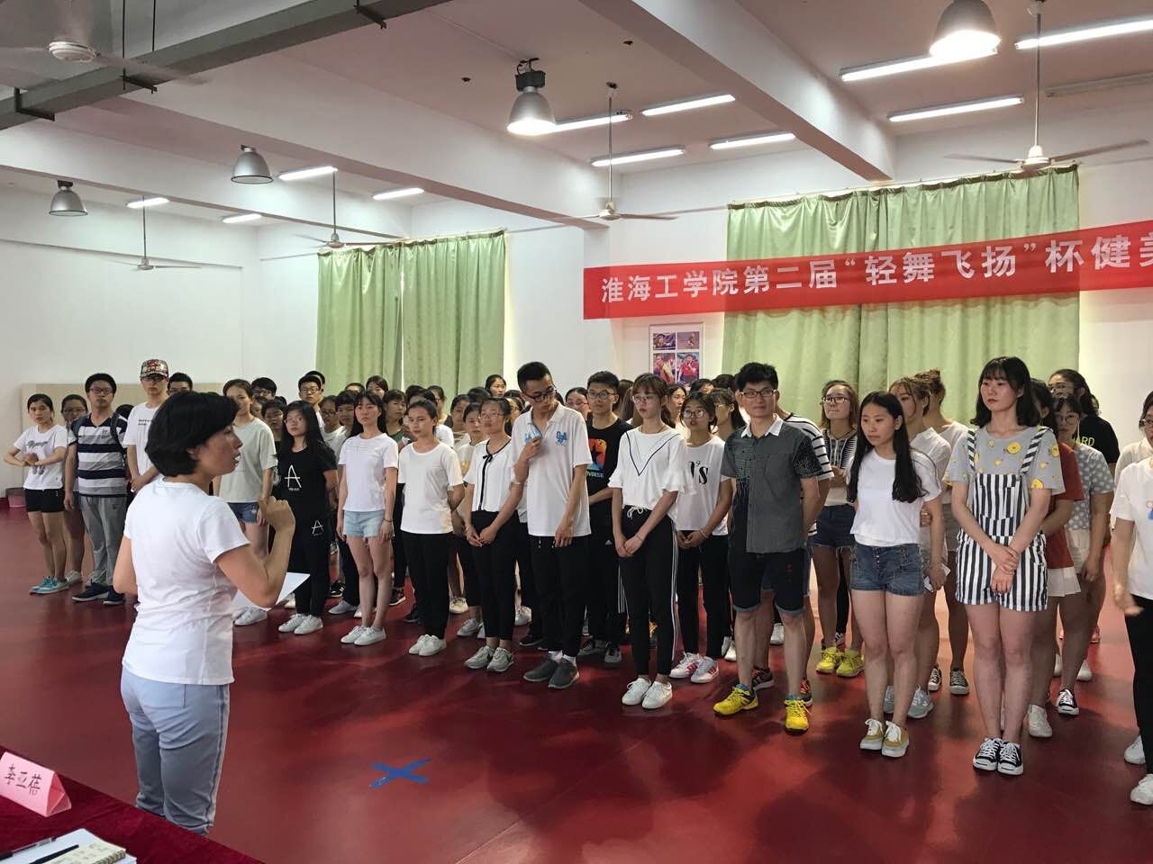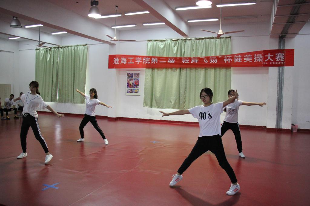 2017年6月1日,淮海工学院第二届“轻舞飞扬”杯健美操比赛圆满落下帷幕。为了丰富学生的课余生活,普及健美操运动,将青春演绎到极致,我校健美操俱乐部在体育场举办了第二届健美操大赛。本次大赛由体育学院举办,参赛队伍涉及全校的各个学院共17支队伍,参赛人数达100人,队员们个个精神饱满,神采奕奕,无处不体现着青春和活力。