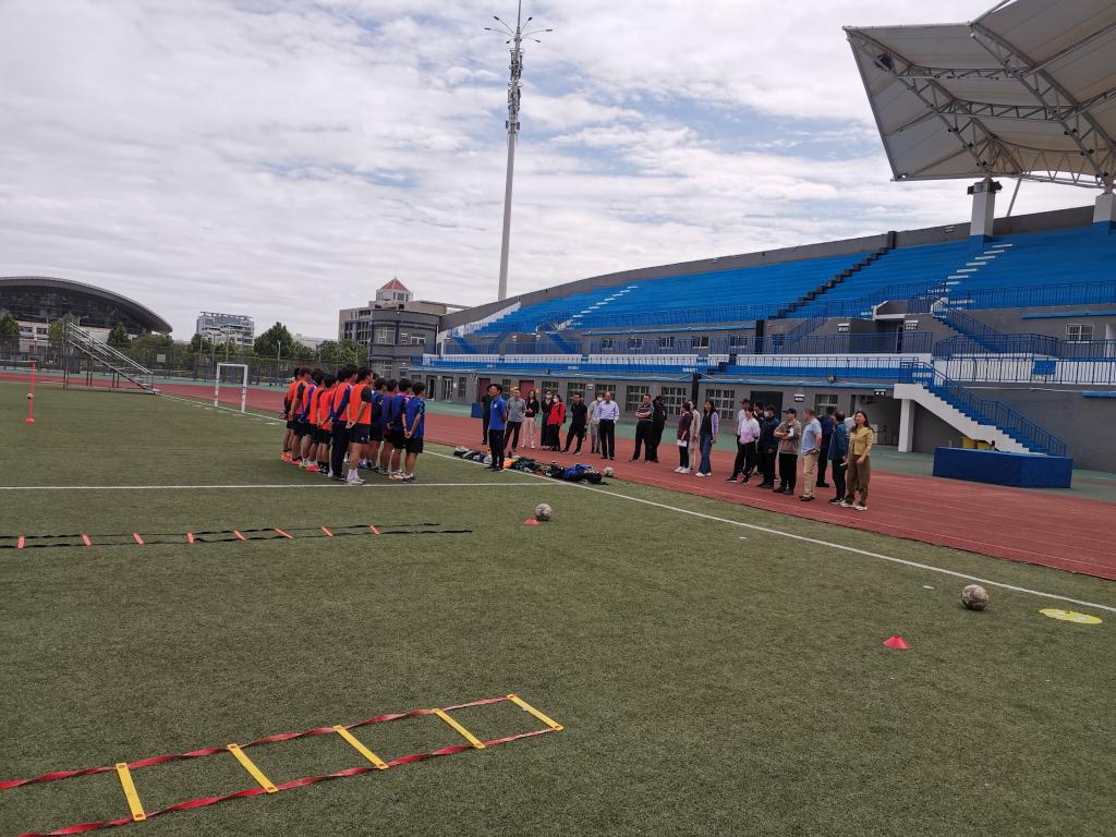 下午14:40,体育学院全体教师齐聚苍梧校区东运动场,全程观摩了郭丰瑞老师主讲的足球课程。郭老师教学准备充分,讲解清晰,示范准确,动作规范,组织合理有序,教学方法新颖,科学监控练习密度和运动负荷,并将培养吃苦耐劳、持之以恒、团结协作等思政元素有效地融入了足球教学之中,进一步激发了学生团结互助、合作学练的主动性和积极性,教学效果显著。