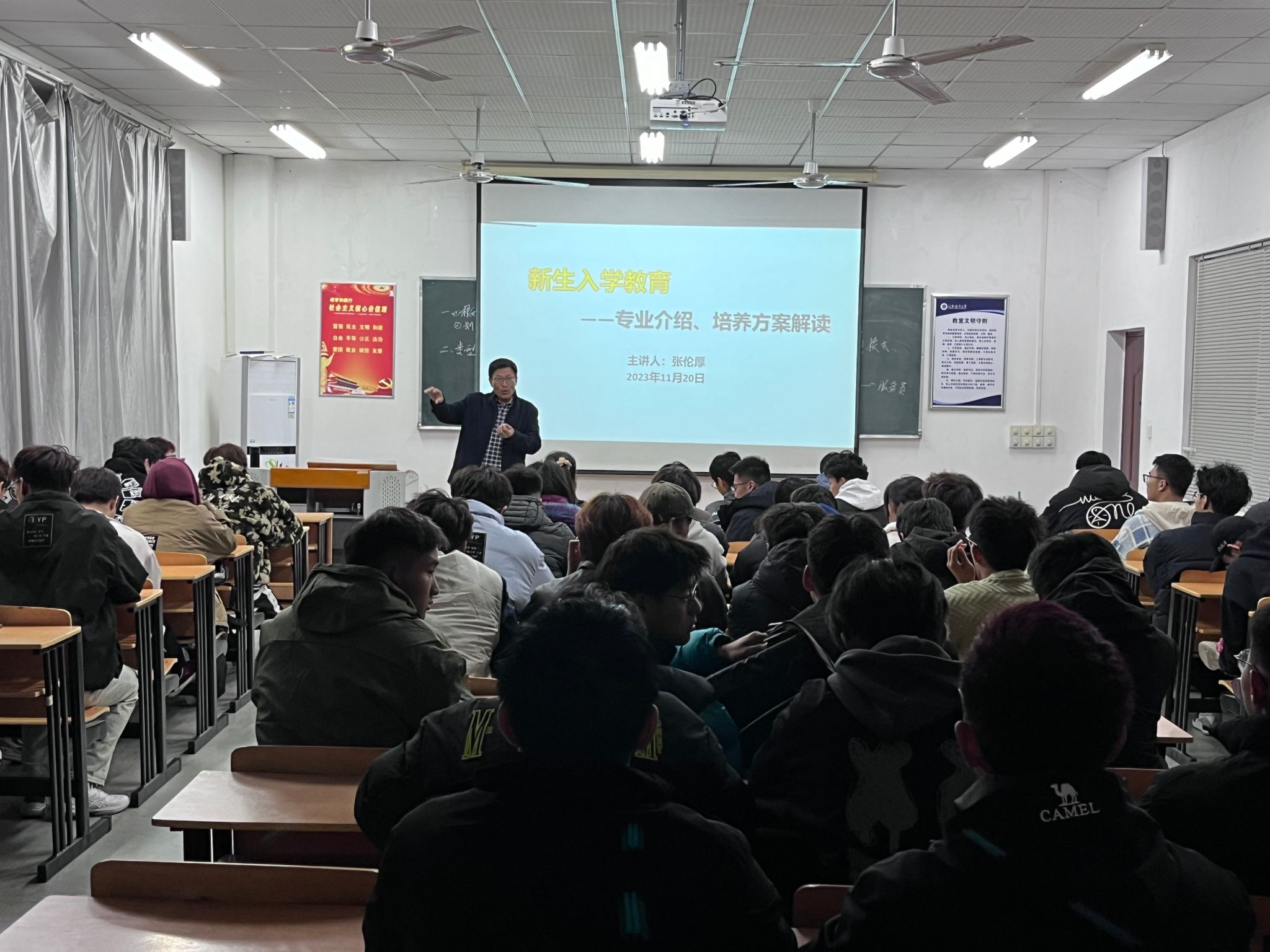 为扎实做好2023级新生入学教育工作,引导学生尽快适应大学的教育方式和学习生活。11月20日晚,休闲体育专业介绍会在学院212教室召开。会议由学工办主任仝友鹏主持,副院长张伦厚作为本次介绍会的主讲人,全体23级新生参加了本次会议。