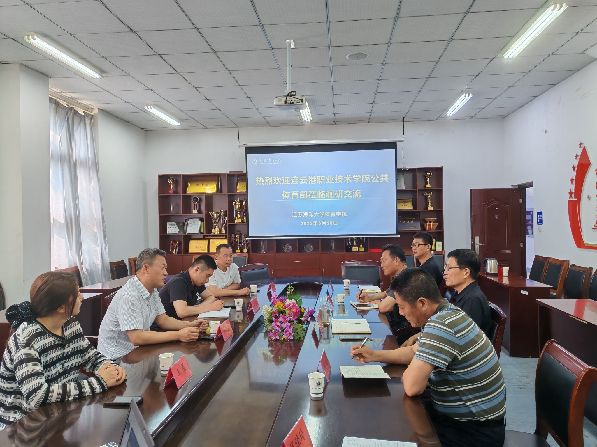6月30日下午,连云港职业技术学院公共体育部主任张文军一行五人到体育学院进行调研交流。调研会由学院院长张伦厚主持,部分系室主任参加了会议。