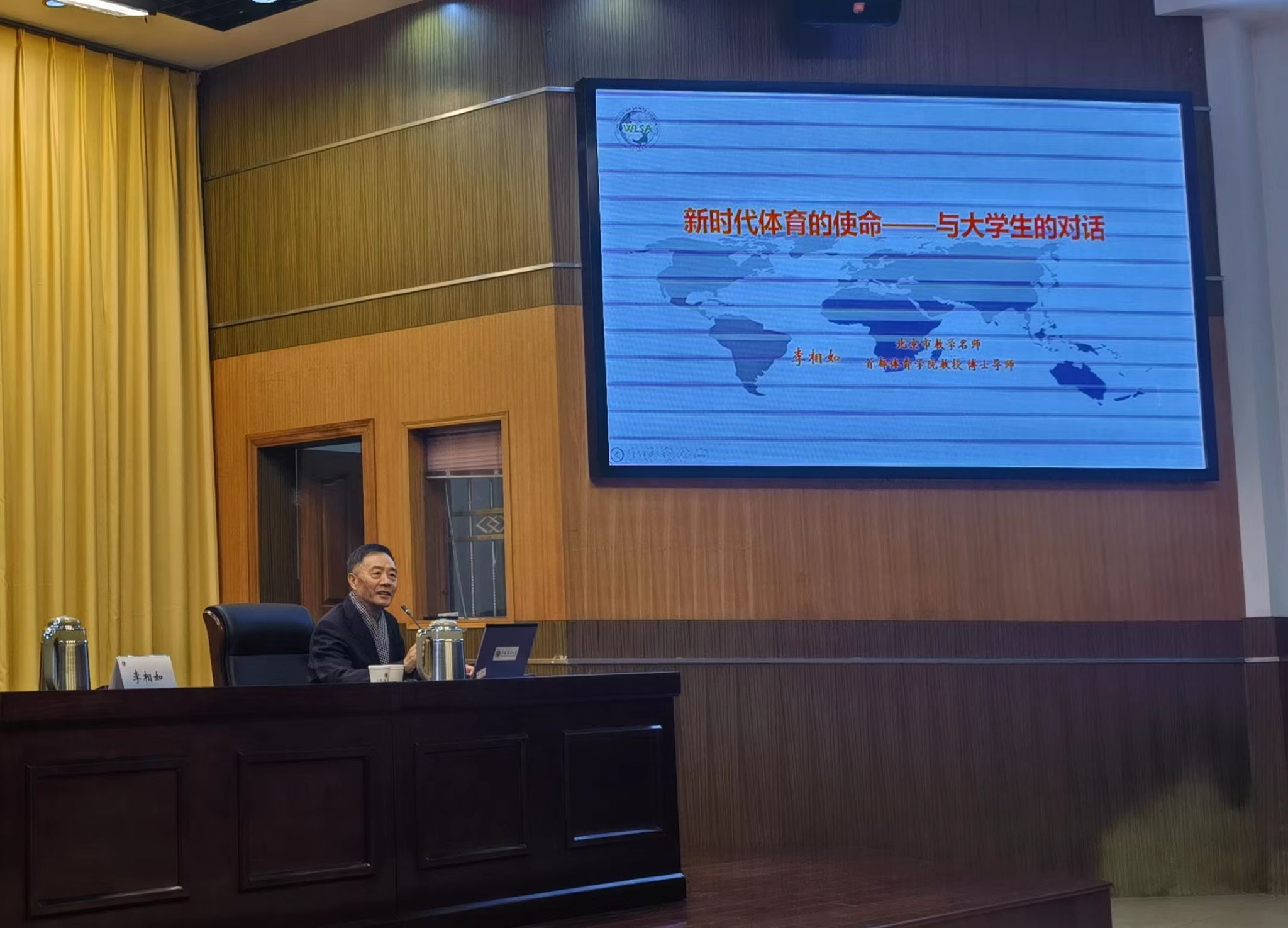 2023年11月5日上午,首都体育学院休闲与社会体育学院院长、博士生导师李相如教授受邀在文博楼报告厅为我院学生作《新时代体育的使命——与大学生的对话》学术讲座,客座教授戴俊主持,我院院长赵宏出席会议,中青年骨干教师和全体学生参加本次讲座。